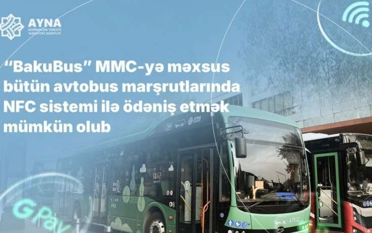 Bu gündən Bakı şəhəri üzrə “BakuBus” MMC-yə məxsus bütün avtobus marşrutlarında NFC sistemini dəstəkləyən yerli bank kartları, eləcə də “Apple Pay” və “Google Pay” vasitəsilə nağdsız ödəniş mexanizmi tam şəkildə aktivləşdirilib.