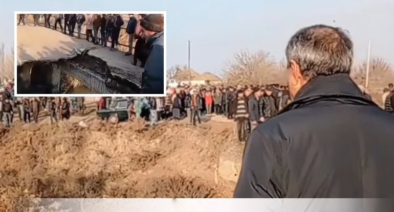 Cagdas.Az İTV-yə istinadən xəbər verir ki, körpünün uçması nəticəsində pambıqyığan kombayn ərazidən keçən kanala aşıb.