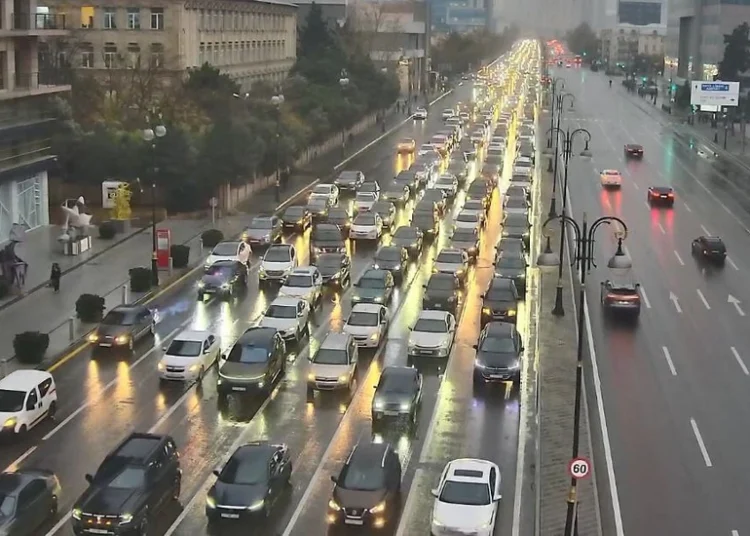 Bakının bir sıra yollarında nəqliyyatın sıxlığı yaranıb.