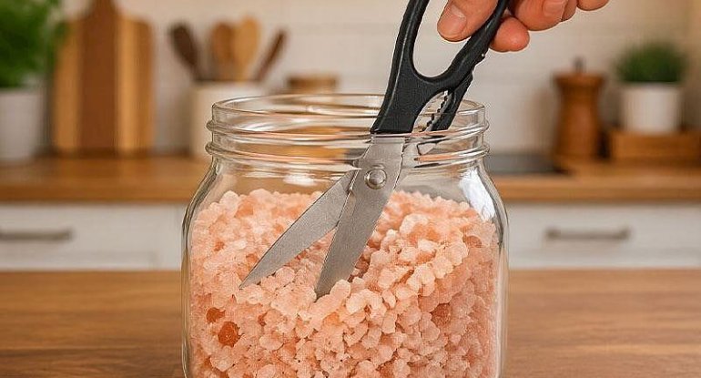 Mətbəxdə qayçınızın əvvəlki kimi kəsmədiyini hiss edirsinizsə, peşəkar itiləmə vasitələrinə ehtiyac duymadan qaya duzu ilə müvəqqəti həll yolu tapa bilərsiniz.