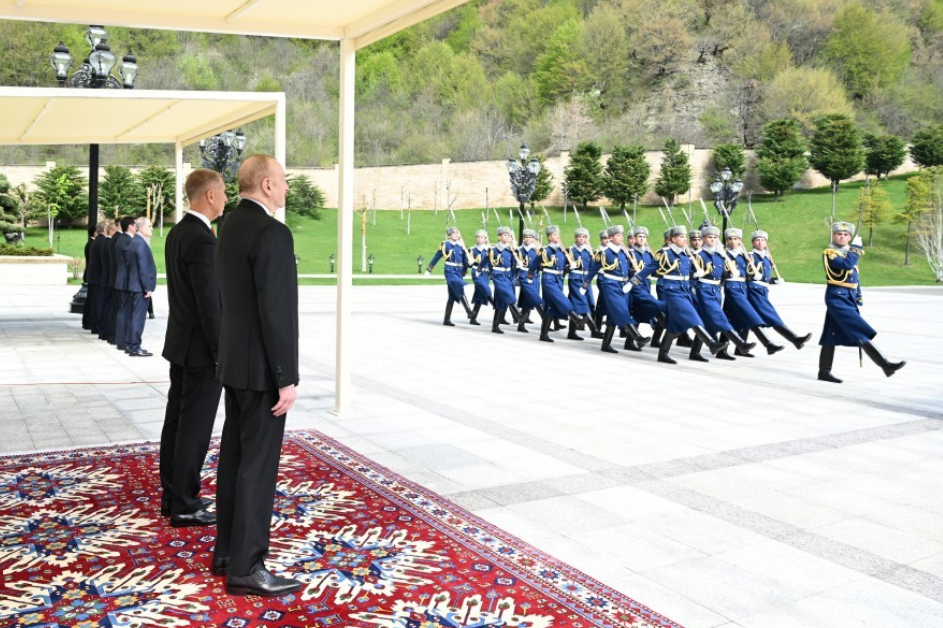 Fəxri qarovul dəstəsi hərbi marşın sədaları altında Azərbaycan Prezidenti İlham Əliyevin və Çexiyanın Baş naziri Andrey Babişin qarşısından keçib.