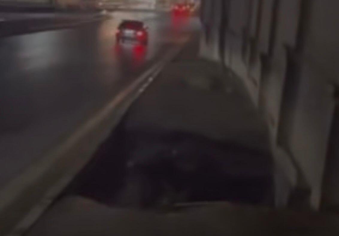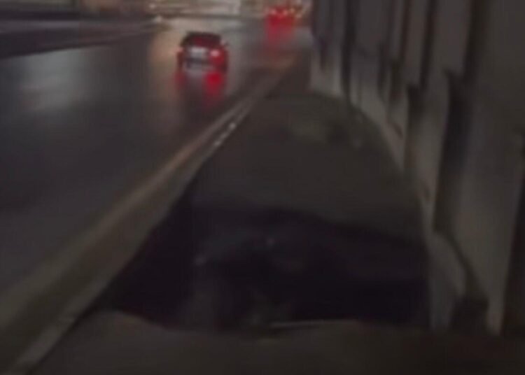 Cagdas.az xəbər verir ki, yol kənarında yerləşən piyada səkisinin üzərində iri çuxur əmələ gəlib.