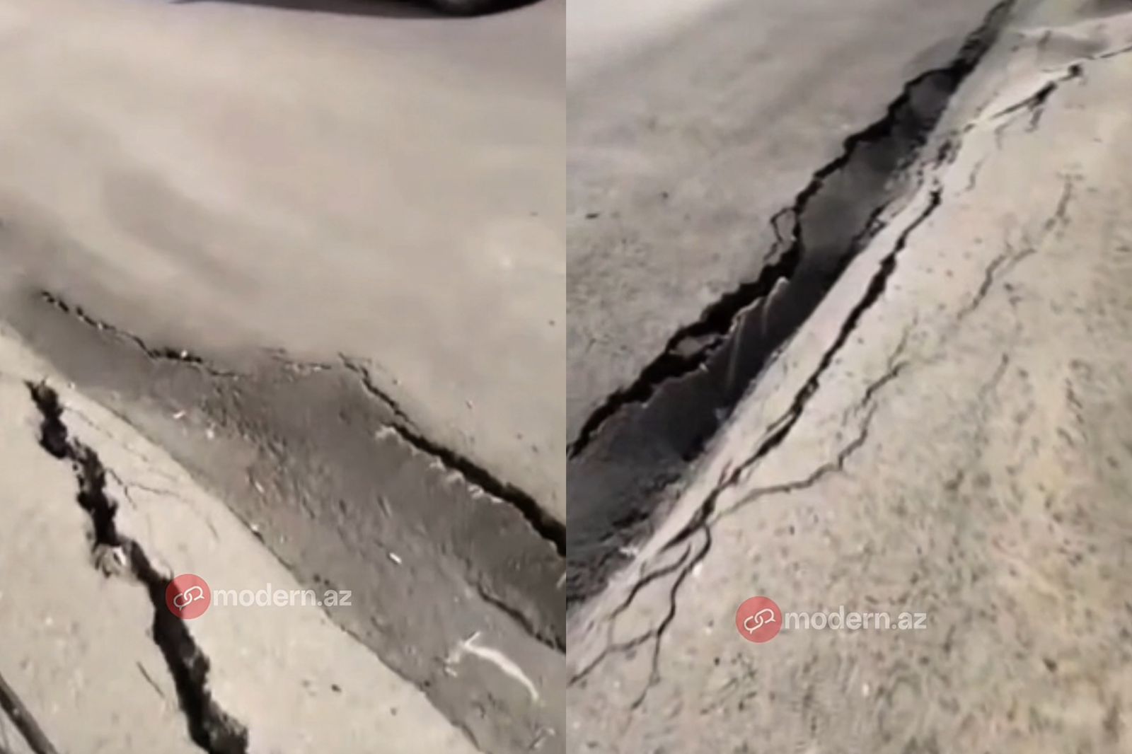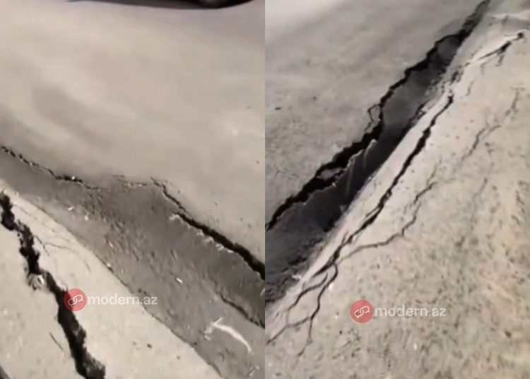 Cagdas.az xəbər verir ki, görüntülərdə asfalt örtüyündə dərin yarıq və çökmə olduğu müşahidə edilir.
